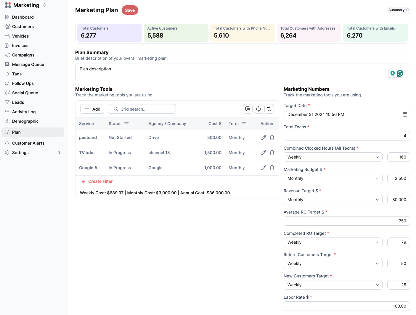 In the Marketing Numbers area, you can add your marketing budget and goals.